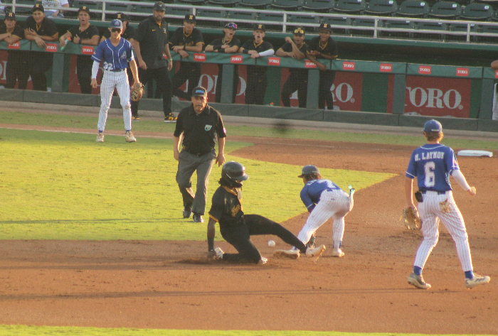 Arnold rallied to tie the game in the top of the third inning. Josh Lindsey walked with one out, Moss singled and then gave way to courtesy runner Nico Landavazo, and then Austin Hendrix also walked to load the bases. Conor McCann then delivered with an RBI single to left that plated two runners, before the lead runner was caught out advancing to third base.
